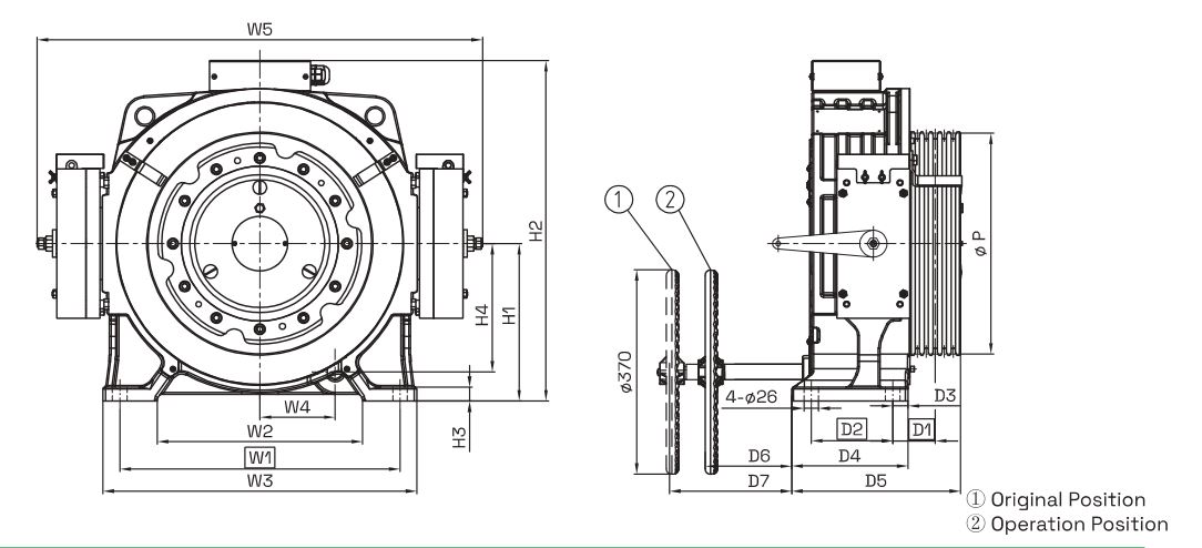 Máy kéo Nidec WJC 450 dành cho thang tải khách, OH cao WJC - 450 - 100 sở hữu tải trọng 450kg, tốc độ 1m/s, công suất 3kw, đường kính 330mm, sử dụng số lượng cáp x đường kính cáp x bước cáp 4-Φ8-12 WJC - 450 - 150 sở hữu tải trọng 450kg, tốc độ 1.5m/s, công suất 4.5kw, đường kính 330mm, sử dụng số lượng cáp x đường kính cáp x bước cáp 4-Φ8-12 Thuận Anh tự hào là nhà phân phối chính hãng và là đối tác chiến lược của Nidec tại Việt Nam Tỉ số truyền 2:1 Tải trọng tĩnh 1500kg Tải trọng máy: 195kg